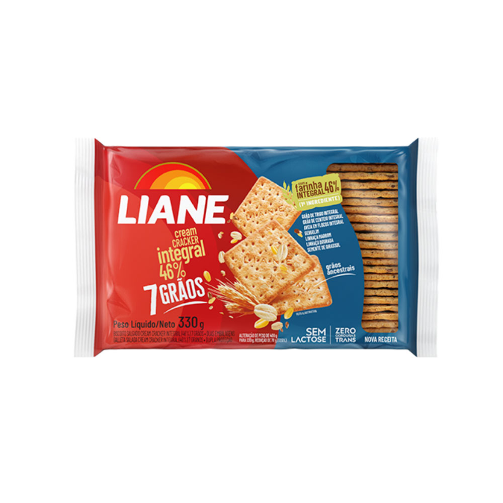 BISCOITO CREAM CRACKER INTEGRAL 7 GRÃOS SEM LACTOSE 330 GRAMAS - LIANE